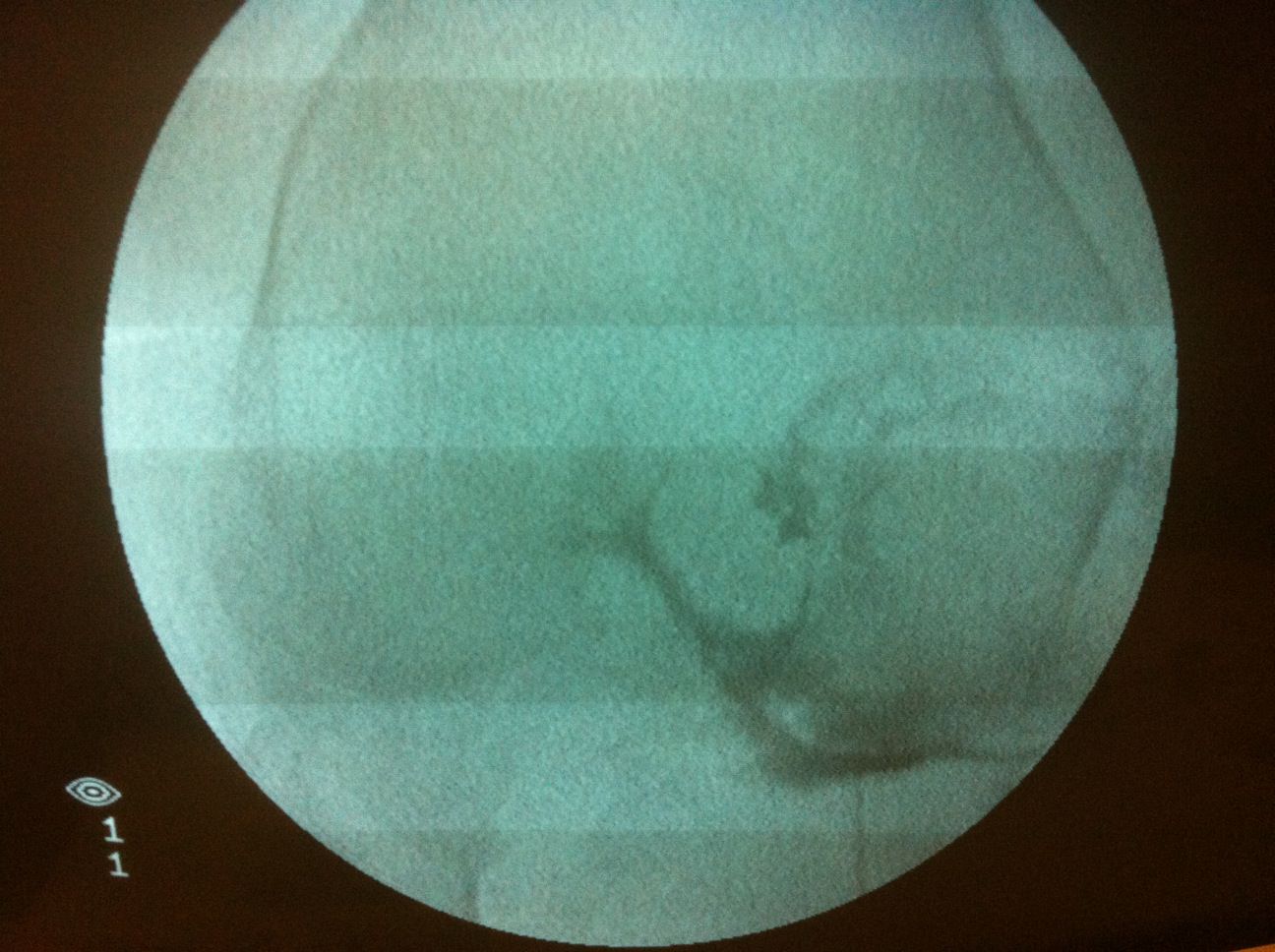 Une repérage de la zone à viscosupplémentée est réalisée sous radioscopie. Une arthrographie pré injection confirme le bon positionnement de l’aiguille en intra-articulaire et permet d’analyser l’articulation (capsulite rétractile, osteochondromatose etc…).