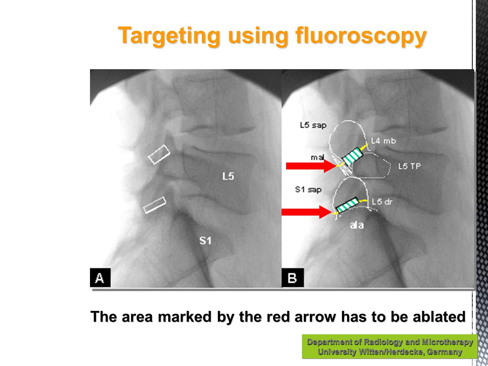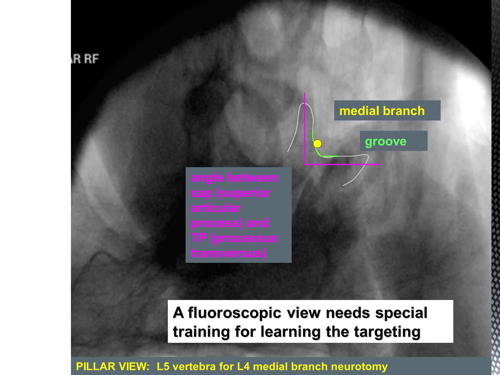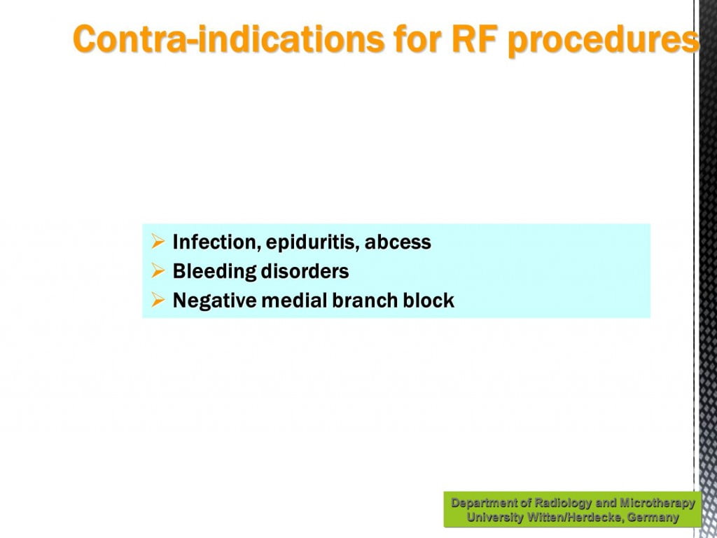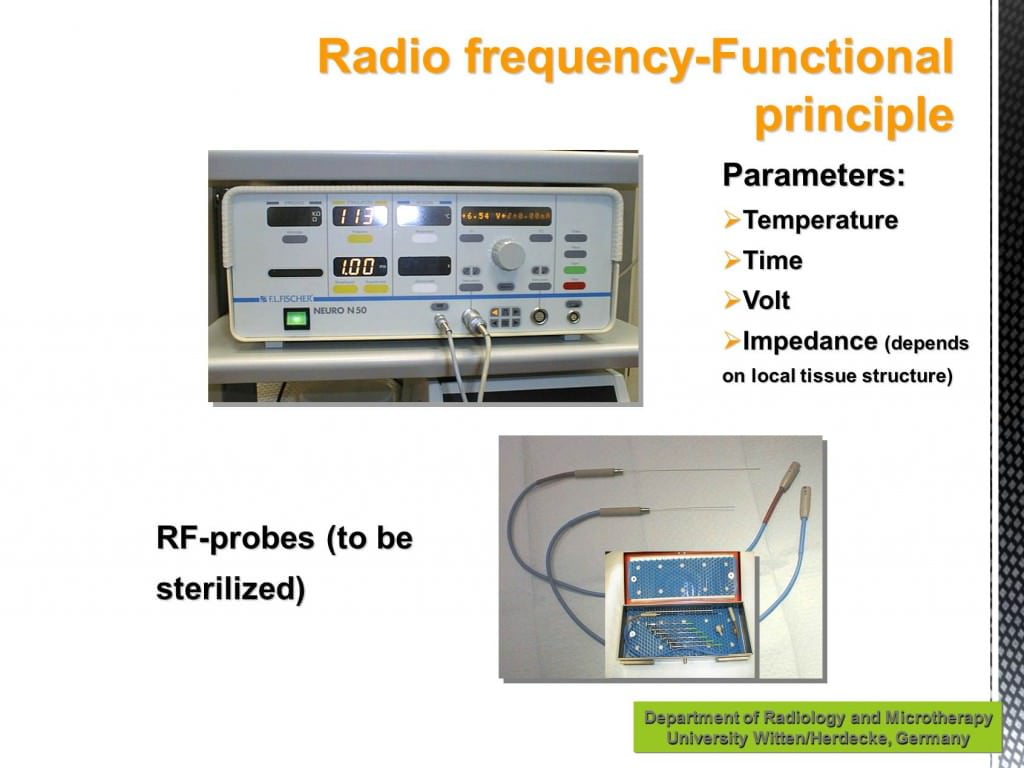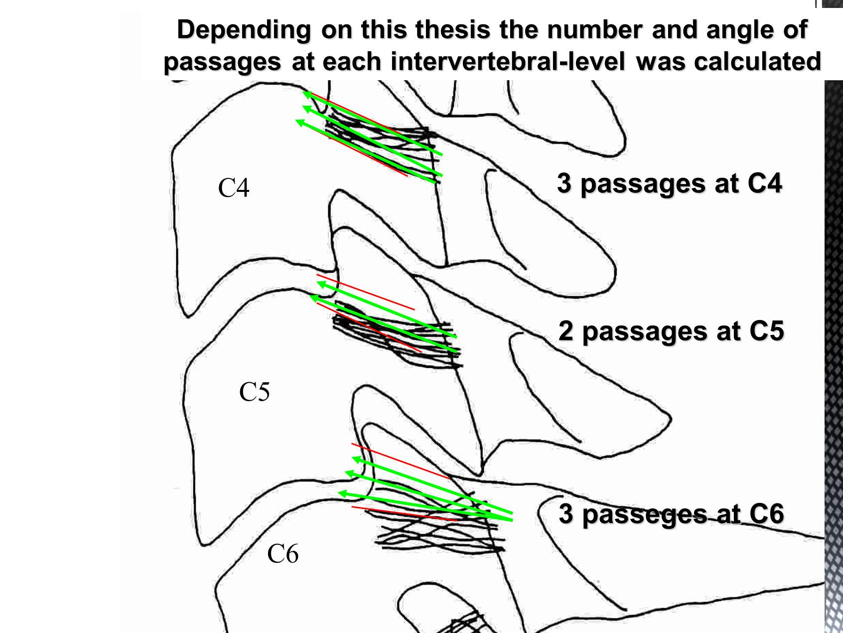 Un repérage scanner permet de localiser la zone de passage des rameaux nerveux postéro-médian.A l’aide d’une aiguille à ponction lombaire une stimulation des masses musculaires para-vertebrales permet de localiser la zone nerveuse à detruire.