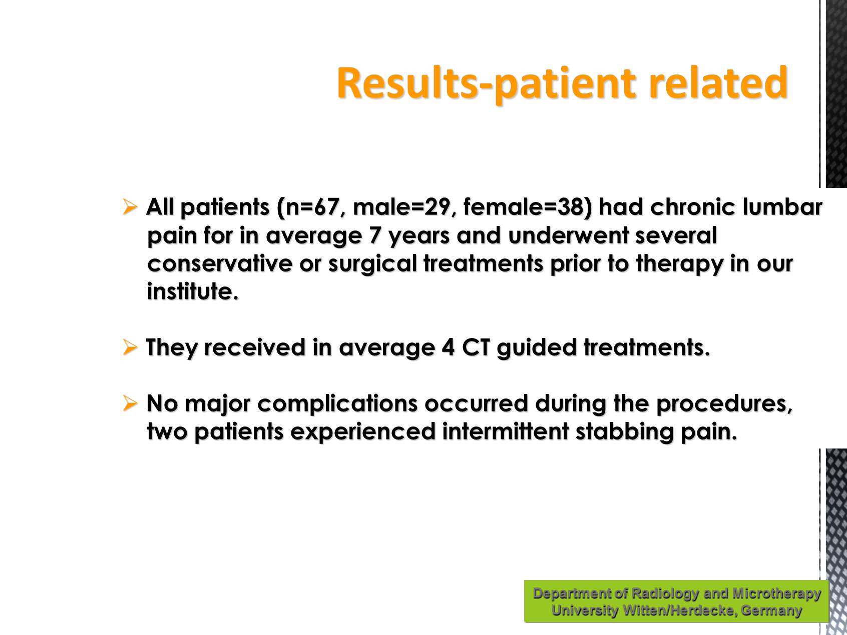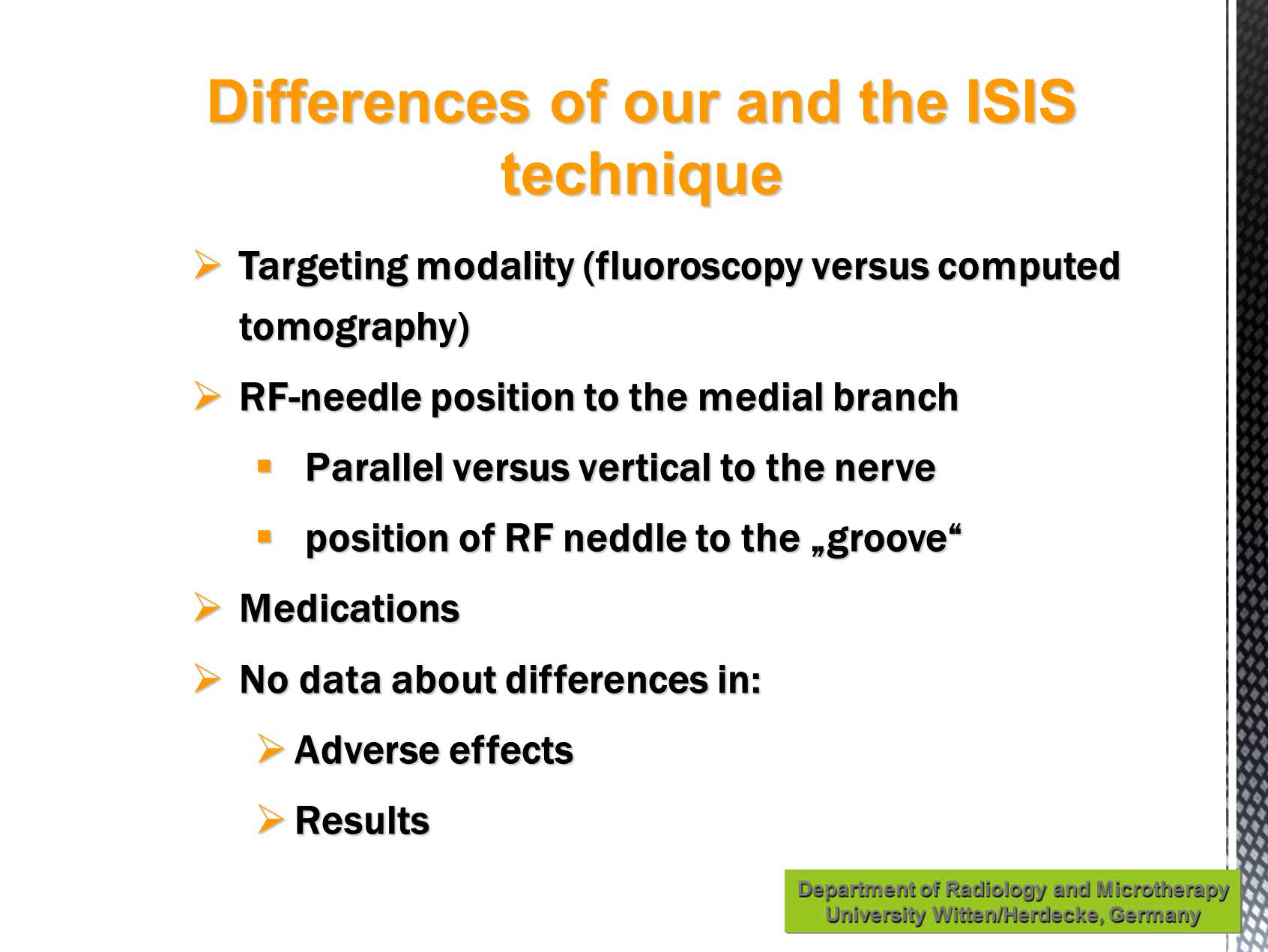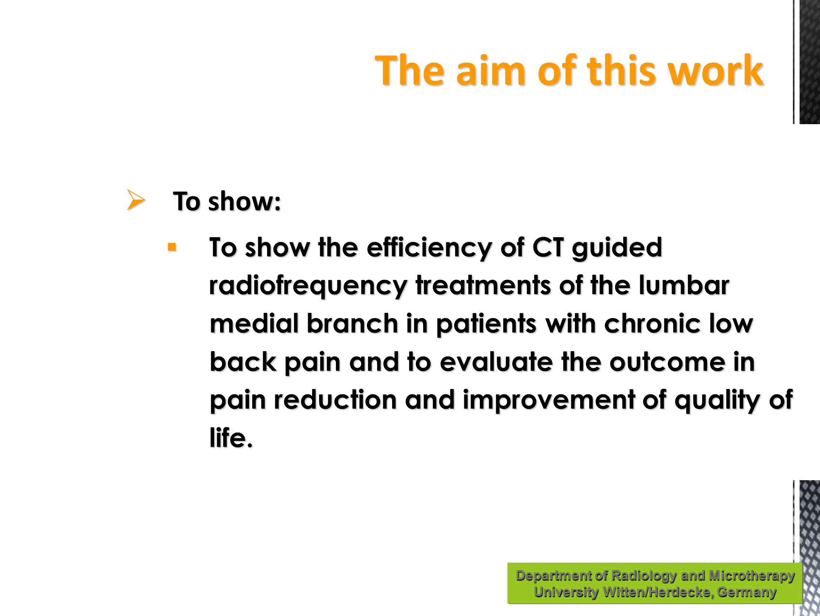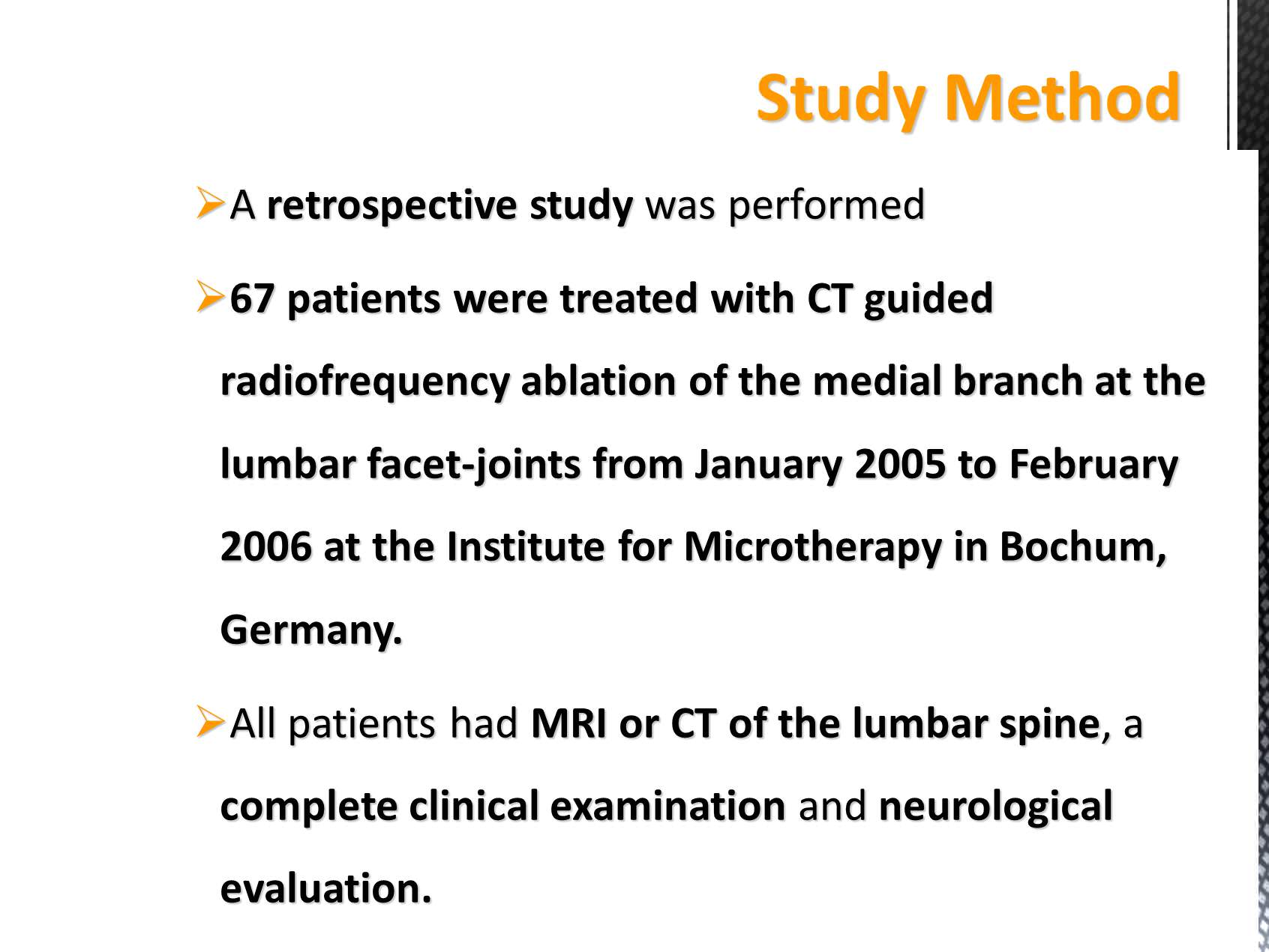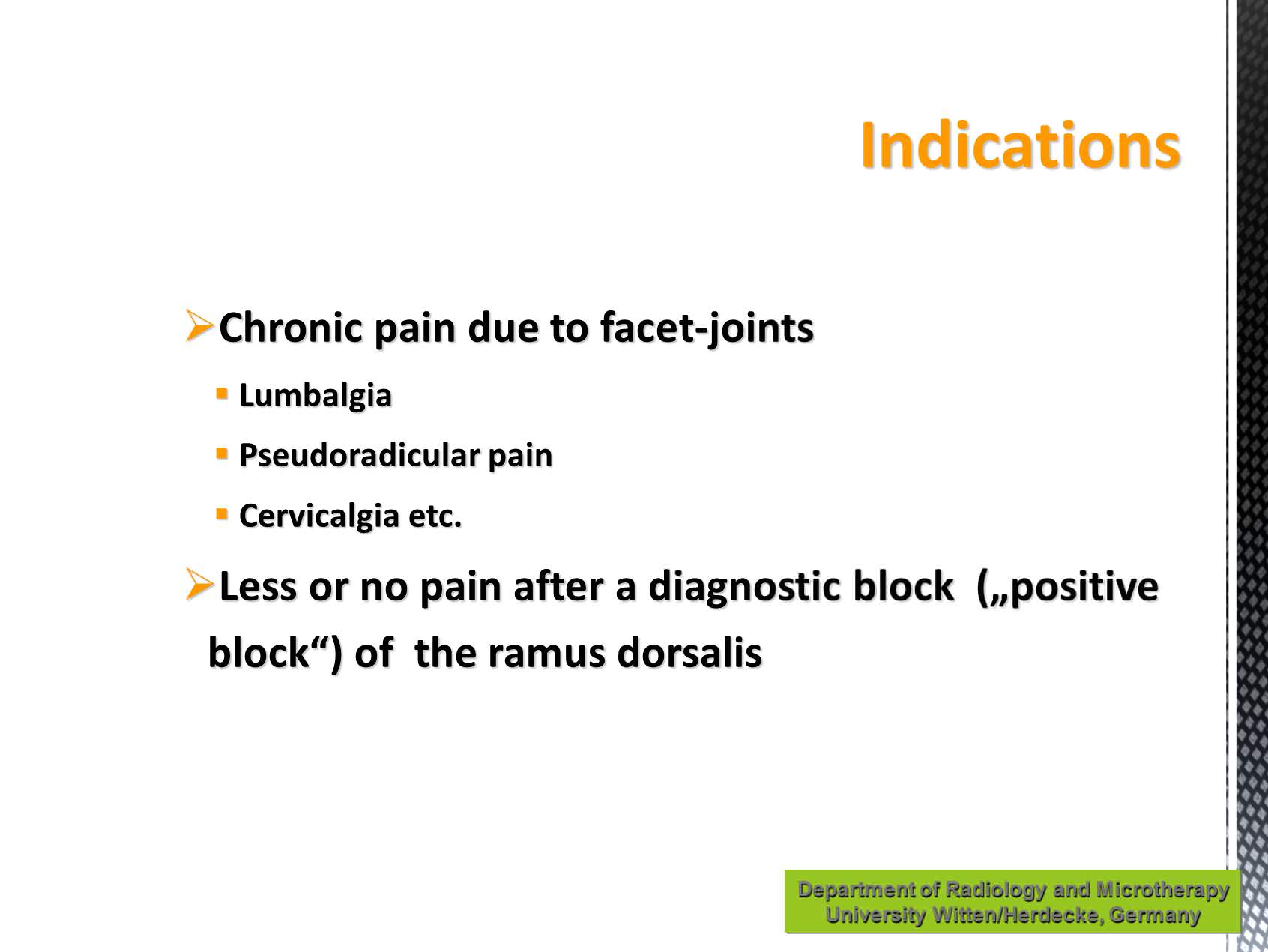 Un repérage scanner permet de localiser la zone de passage des rameaux nerveux postéro-médian.A l’aide d’une aiguille à ponction lombaire une stimulation des masses musculaires para-vertebrales permet de localiser la zone nerveuse à detruire.
